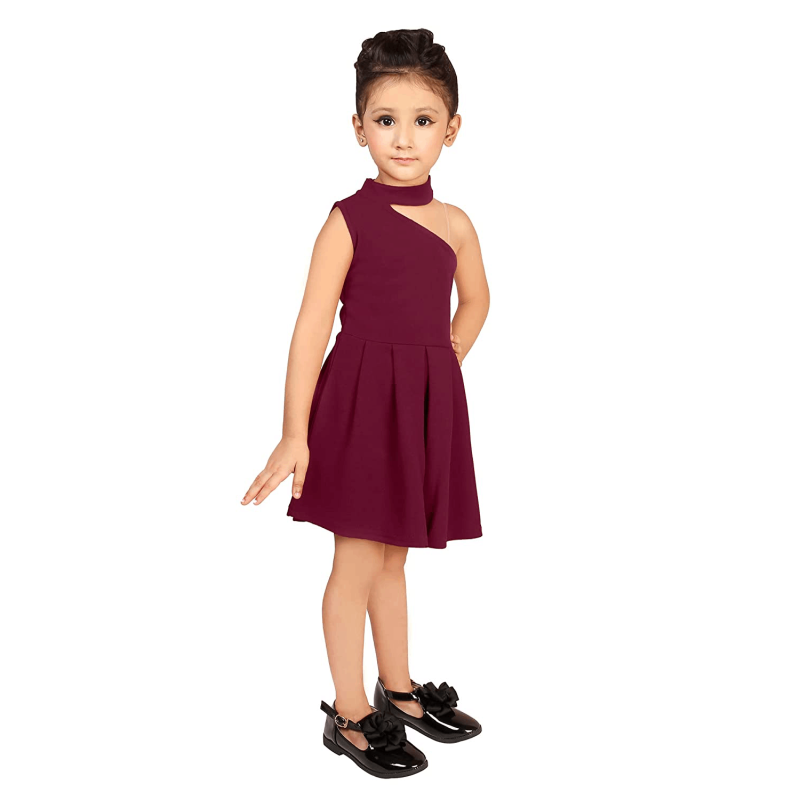 Girls One Shoulder Asymmetric Neck Dress