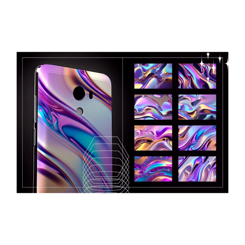 Introducing Liquid Metal | Iridescent Trend. It's the second volume of our Liquid Metal collection. Liquid iridescent metal graphic textures are digital graphic design elements that mimic the appearance of liquid metal with an iridescent or metallic shine. These textures are created using a combination of digital art techniques. They can be used in a variety of design projects, including websites, logos, print materials, and digital media such as Instagram.