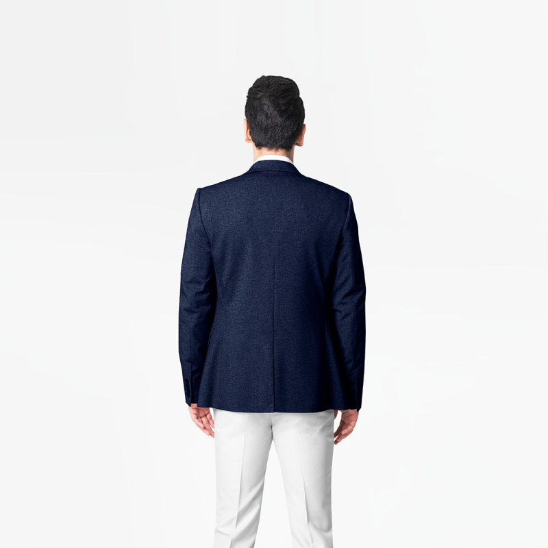 • Navy Blue solid slim-fit formal blazer, has a notched lapel collar, long sleeves, two flap pockets, one chest pocket, single-breasted with a button closure and has double vented back at hem