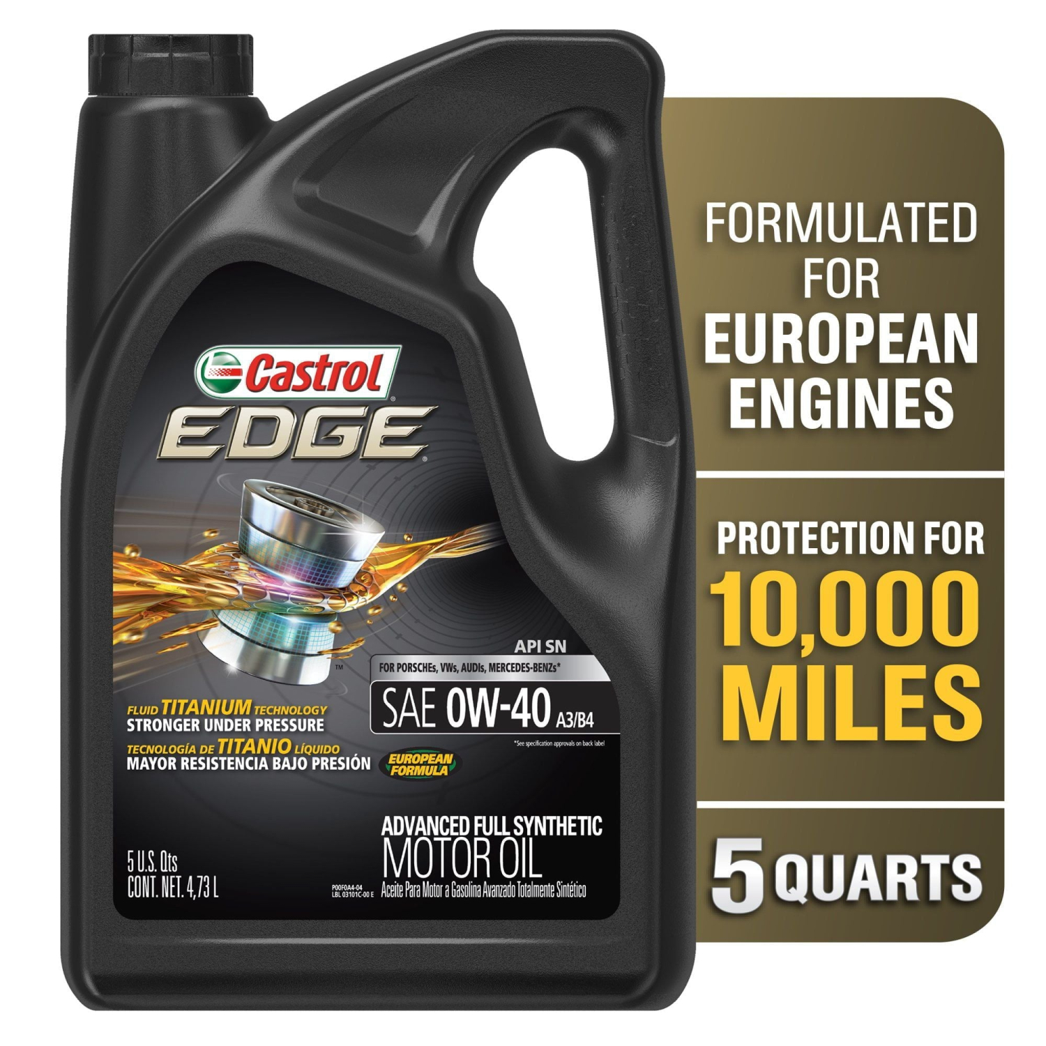 Castrol EDGE Euro 0W-40 A3/B4 Advanced Full Synthetic Motor Oil, 5 Quarts