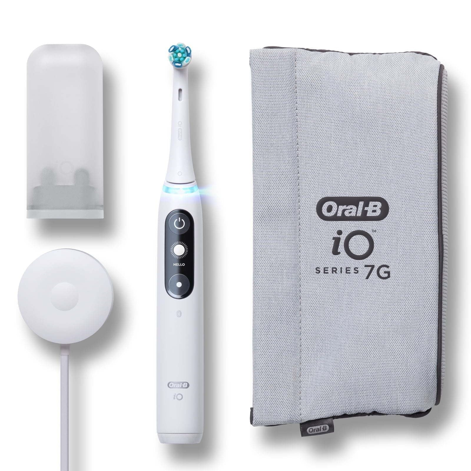 You will receive 1 Oral-B iO Series 7G White Alabaster Electric Toothbrush, 1 Oral-B iO Ultimate Clean Replacement Brush Head, magnetic travel pouch and refill holder