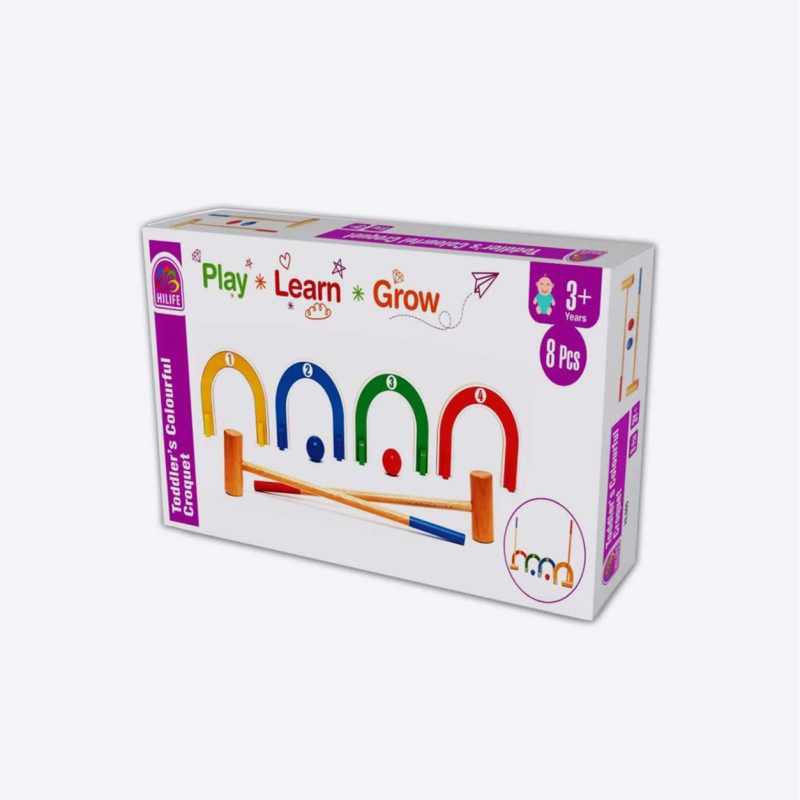 • This 8-piece colourful croquet set made from non-toxic, safety-tested and kids-friendly material.
